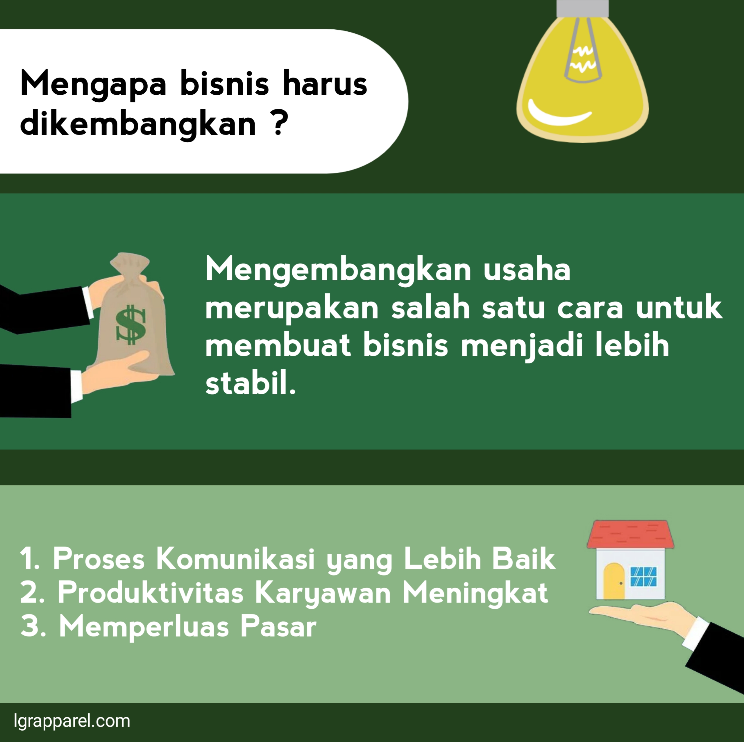 Jika anda yakin bisnis anda bisa berkemmbang, maka Anda harus mengembangkan nya. Jangan berhenti kenapa? Karena dengan bisnis Anda yang semakin berkembang, semakin besar, omset nya meningkat, untung nya banyak.