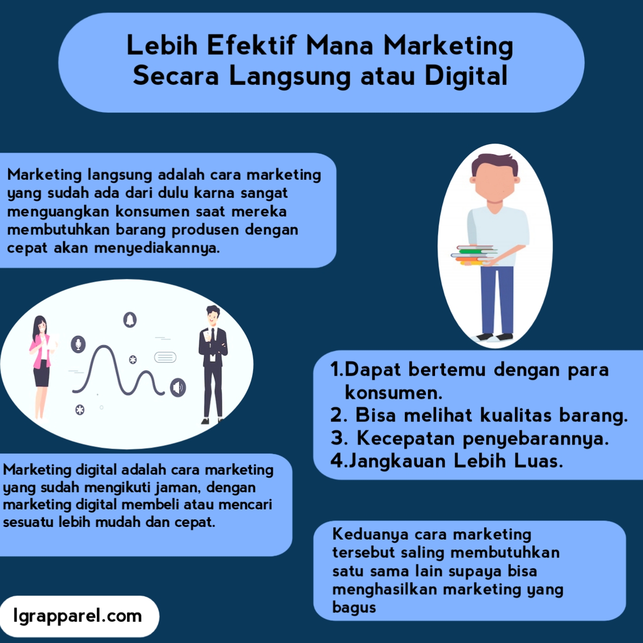 Marketing secara langsung dan marketing secara digital keduanya saling melengkapi. Tidak akan efektif marketing secara digital kalo tidak ada marketing secara langsung demikian juga marketing secara langsung tidak akan efektif jika tidak ada branding dari marketing digital.