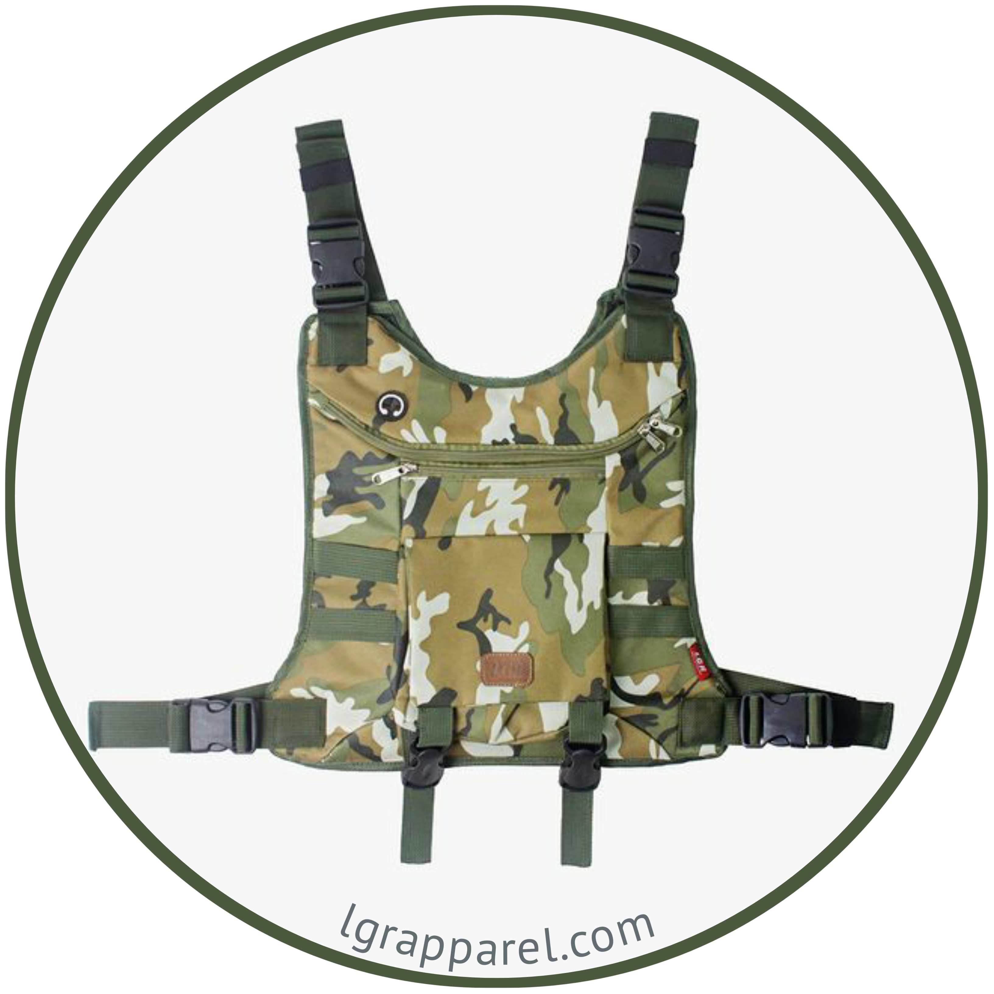 Chest Bag Combat tampil dengan varian terbaru warna green camo (Hijau loreng). Yang memiliki fungsi sebagai pelindung dada, cocok digunakan saat berkendara.