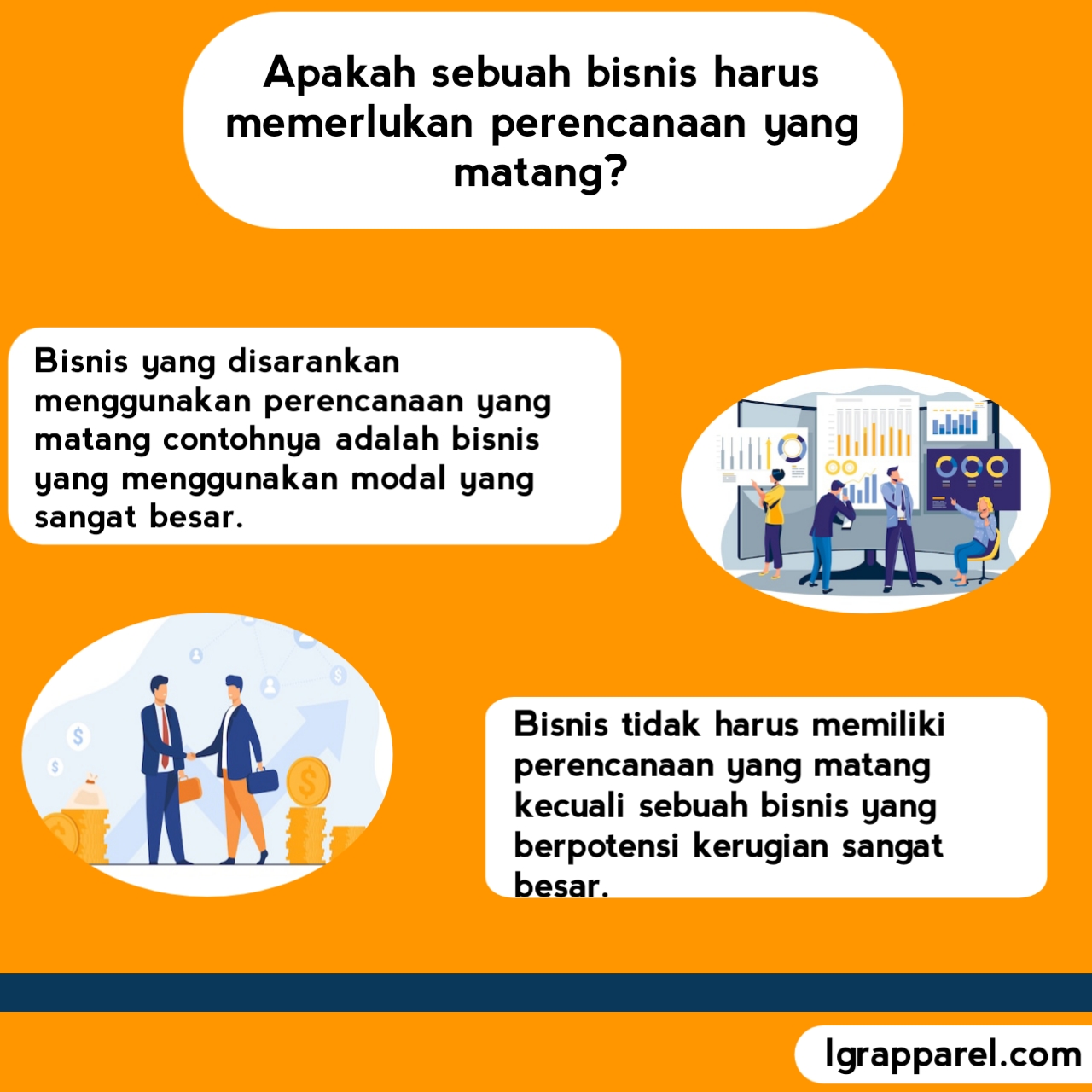 Bisnis tidak mesti harus memiliki perencanaan yang matang kecuali sebuah bisnis yang berpotensi kerugian yang sangat besar. Kalau menggunakan dana atau modal sampai bermilyar-milyar itu baru harus dengan perencanaan yang matang karena potensi kerugiannya yang sangat besar jika sampai gagal.