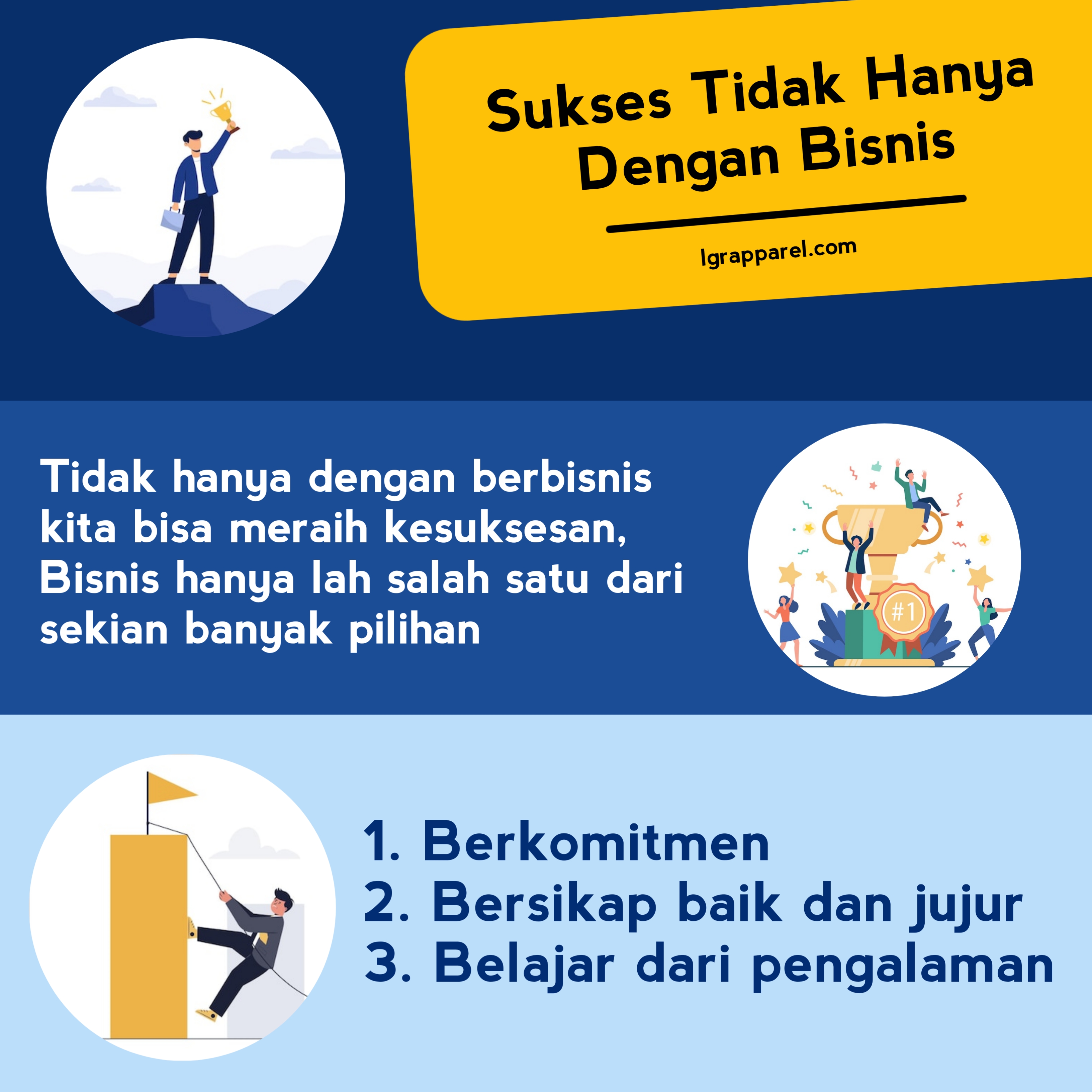 Tidak hanya dengan berbisnis kita bisa meraih kesuksesan, Bisnis hanya lah salah satu dari sekian banyak pilihan, Anda juga bisa meraih kesuksesan dengan cara menjadi ilmuwan yang bisa menemukan formula tertentu ataupun juga bisa menjadi seorang ustadz selain itu juga bisa menjadi dosen maupun guru.